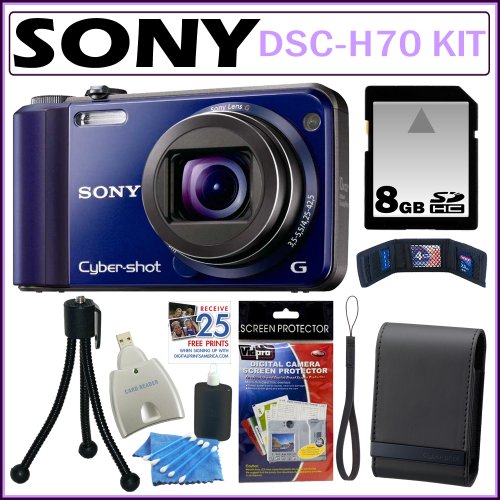 Sony Cyber-Shot DSC-H70 16.1 MP Digital Camera with 10x Wide-Angle Optical Zoom G Lens and 3.0-inch LCD in Blue + 8GB Accessory Kit Best